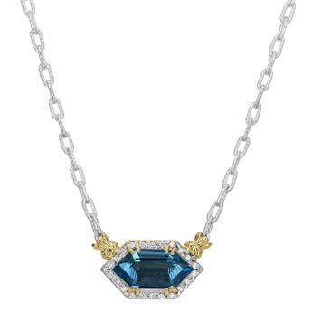14K Gold and Sterling Silver, London Blue Topaz and Diamond Necklace