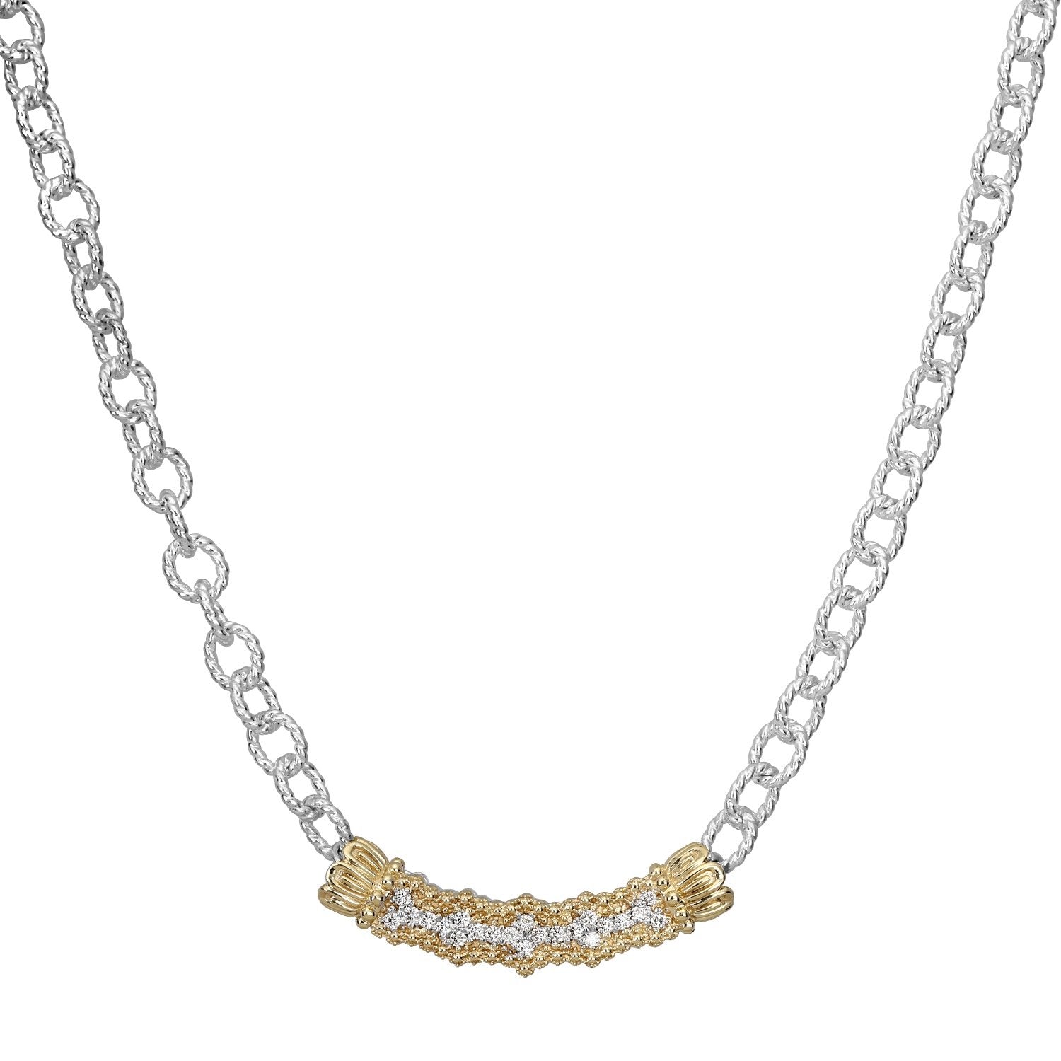 14K Gold and Sterling Silver, Multi-Pavé Diamond Bar Necklace