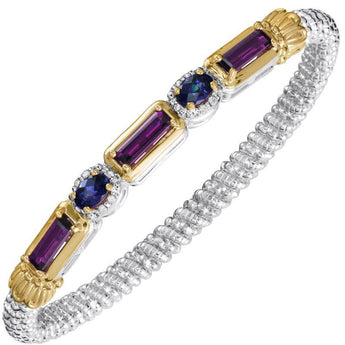 14K Gold and Sterling Silver, Amethyst, Iolite and Diamond Stackable Bracelet | 4MM