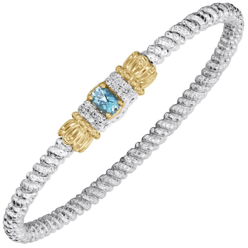 14K Gold and Sterling Silver, Blue Topaz and Diamond Stackable Bracelet | 4MM