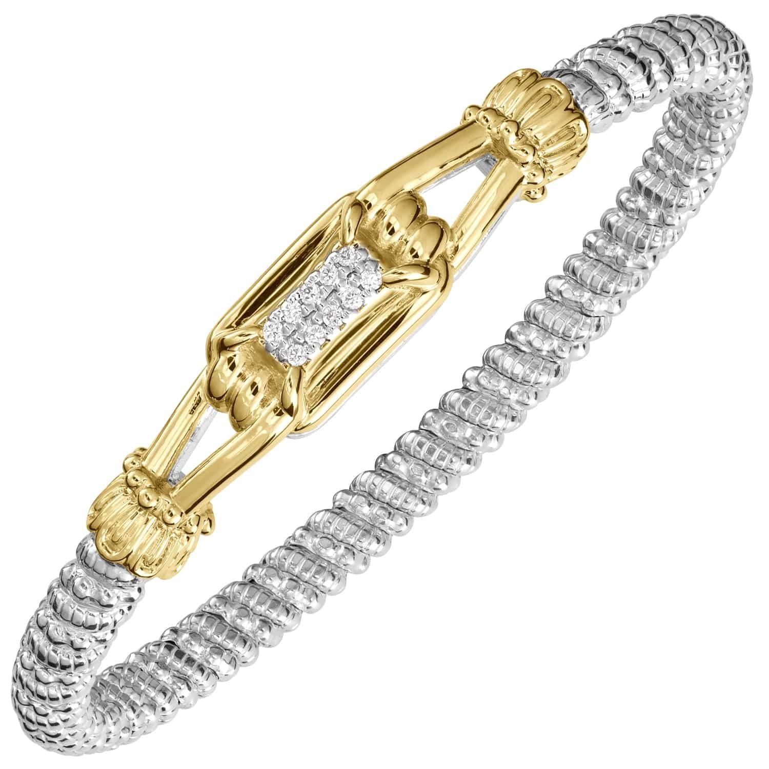 14K Gold and Sterling Silver, Diamond Stackable Bracelet | 4MM