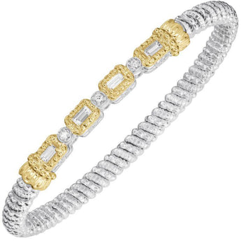 14K Gold and Sterling Silver, Diamond Stackable Bracelet | 4MM