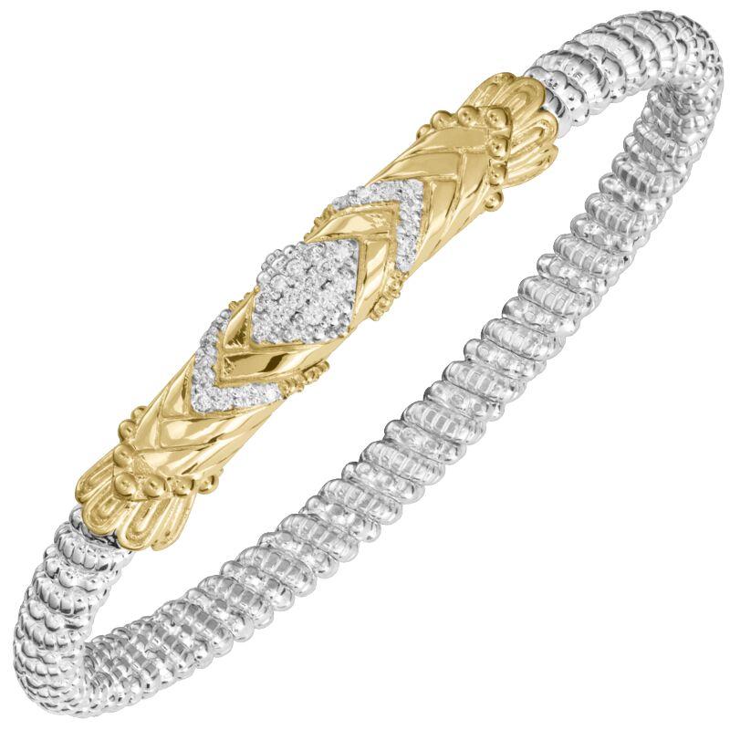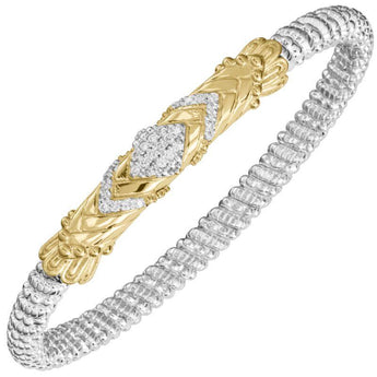 14K Gold and Sterling Silver, Diamond Stackable Bracelet | 4MM