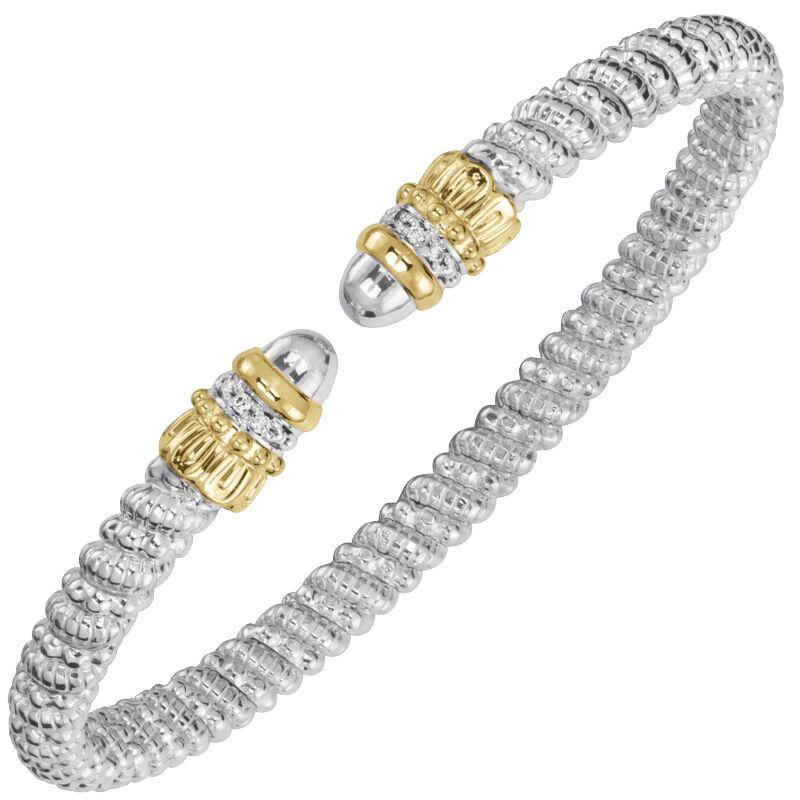 14K Gold and Sterling Silver, Diamond Stackable Cuff Bracelet | 4MM