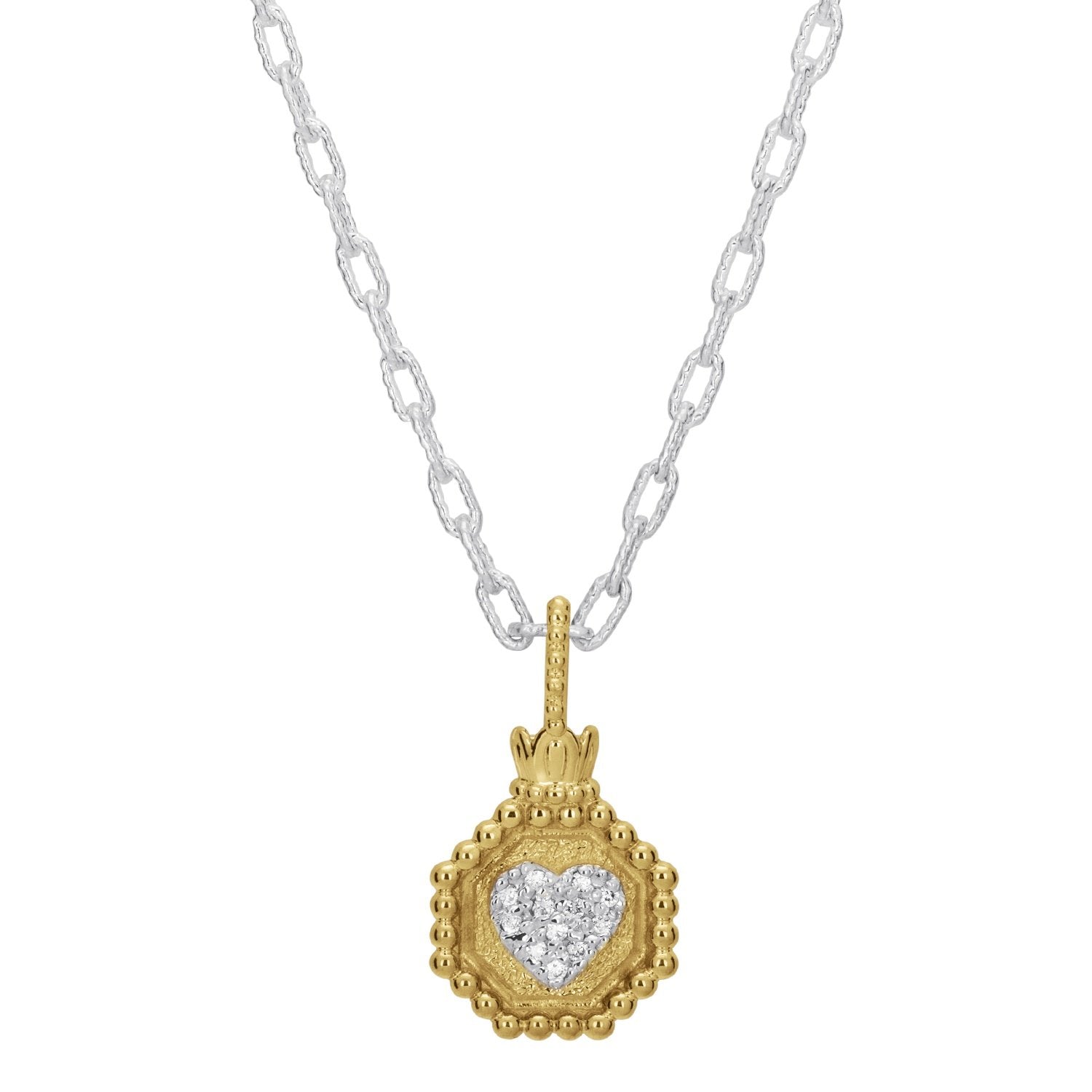 14K Gold and Sterling Silver, Heart Diamond Pendant Necklace