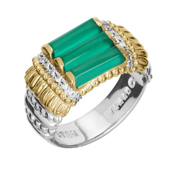 14K Gold and Sterling Silver, Green Onyx and Diamond Ring