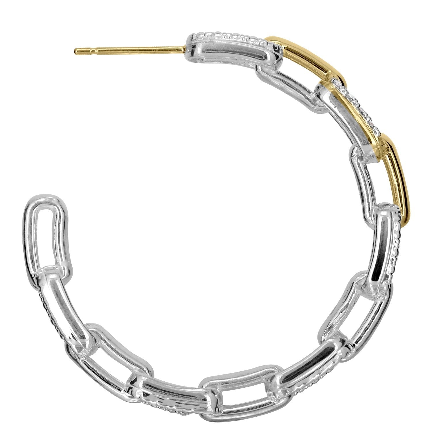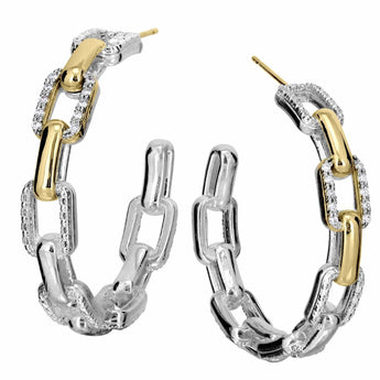 14K Gold and Sterling Silver, Diamond Hoop Earrings