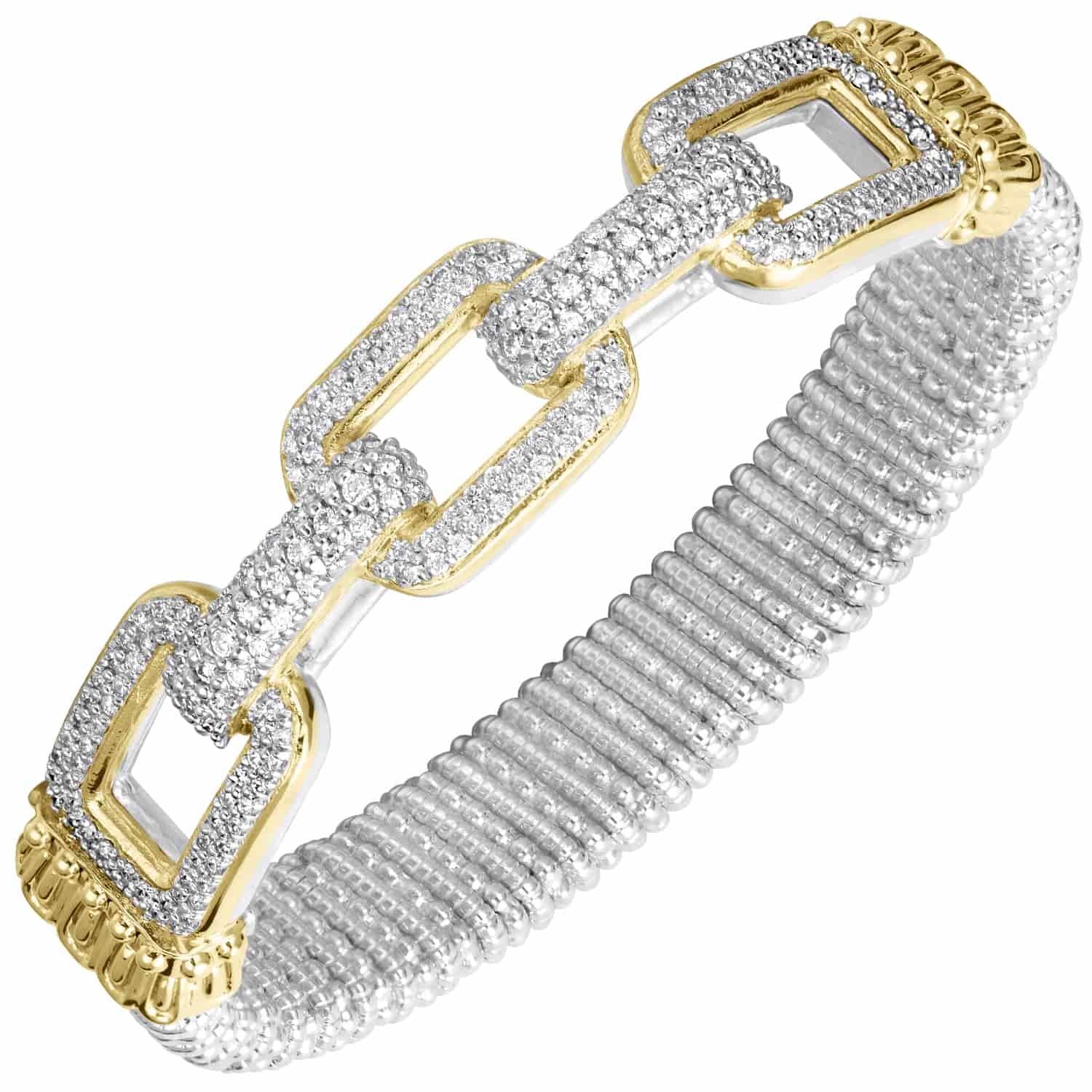 14K Gold and Sterling Silver, Diamond Stackable Bracelet | 12MM