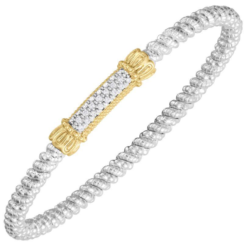 14K Gold and Sterling Silver, Diamond Stackable Bracelet | 4MM