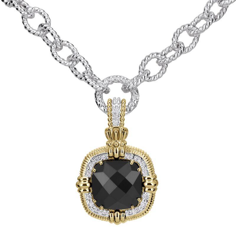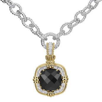 14K Gold and Sterling Silver, Black Onyx and Diamond Statement Pendant