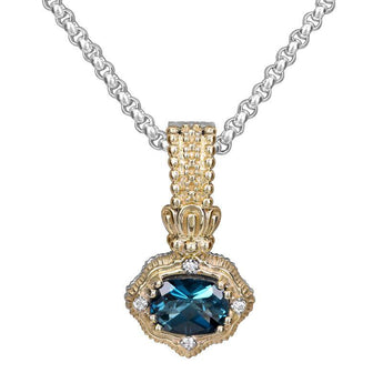 14K Gold and Sterling Silver, London Blue Topaz and Diamond Pendant