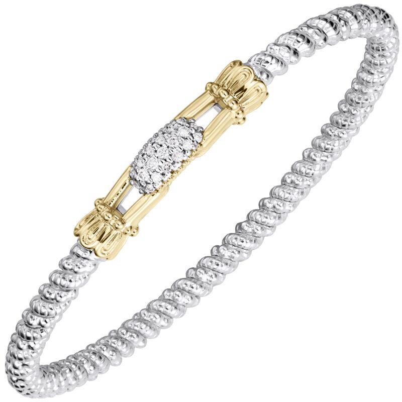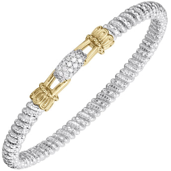 14K Gold and Sterling Silver, Diamond Stackable Bracelet | 4MM