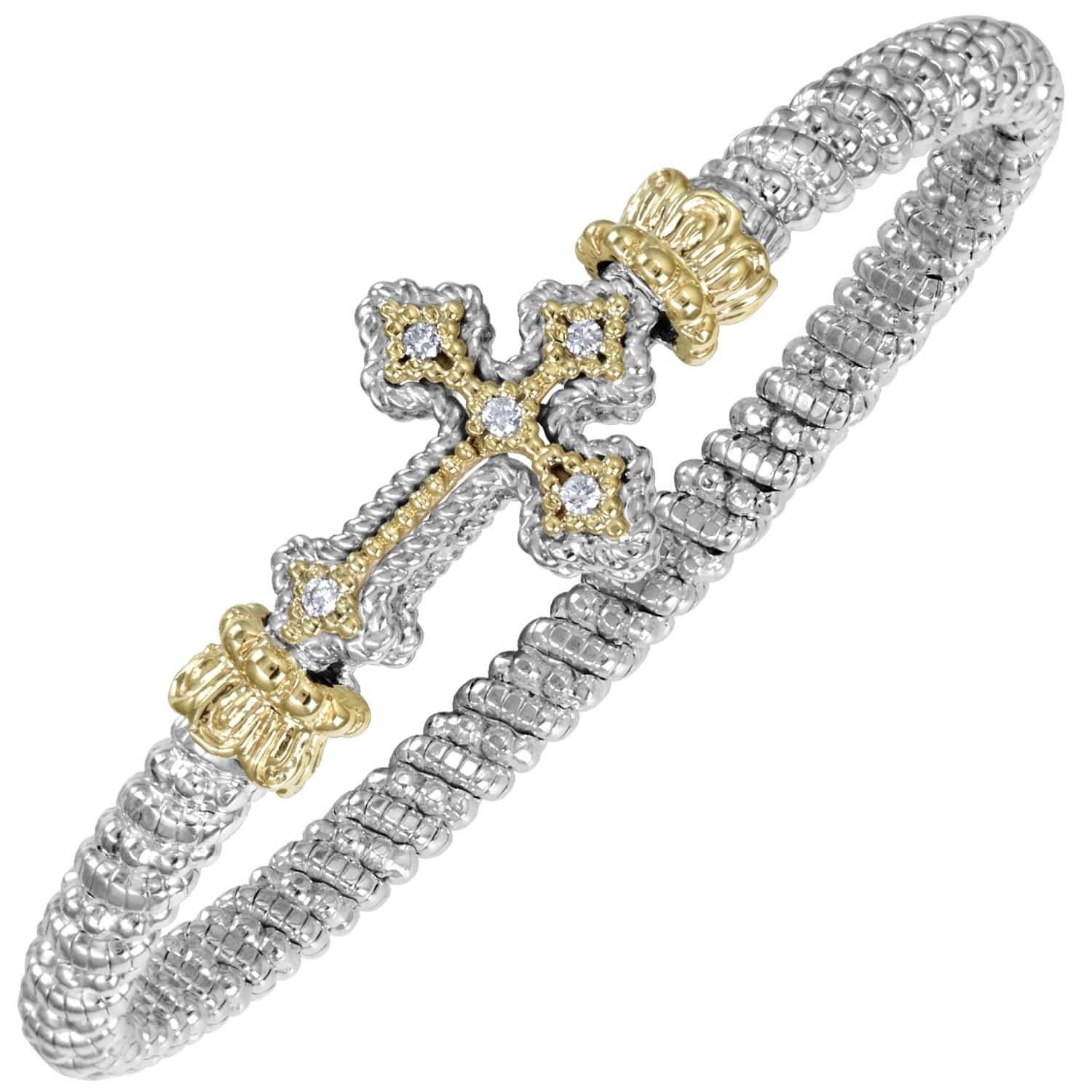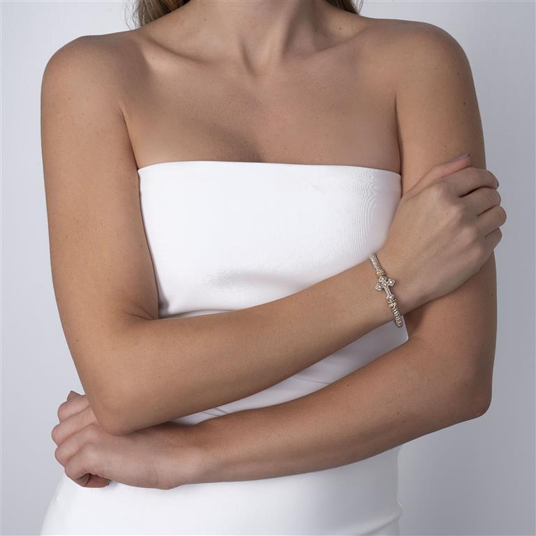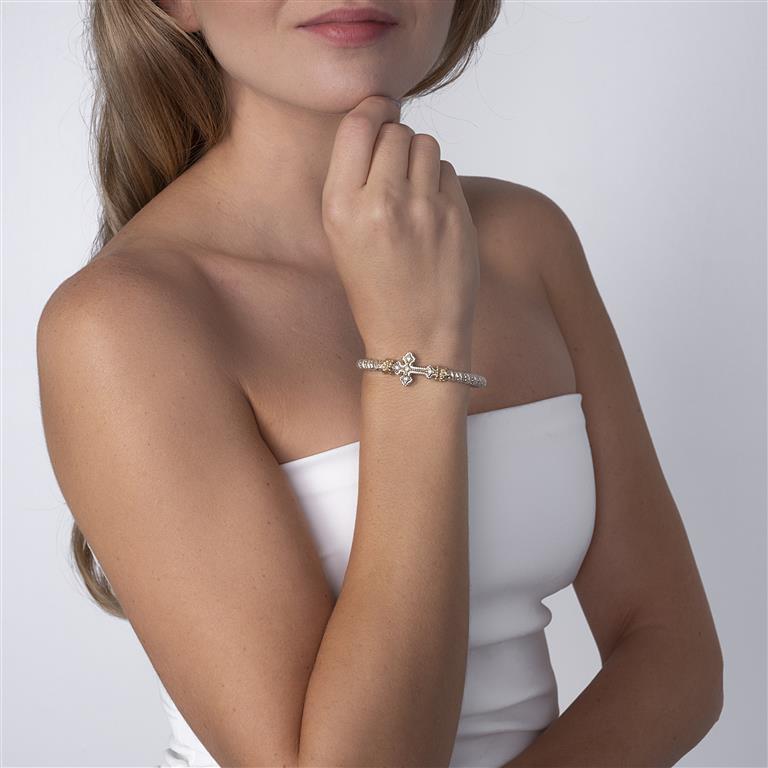 14K Gold and Sterling Silver, Diamond Cross Stackable Bracelet | 4MM