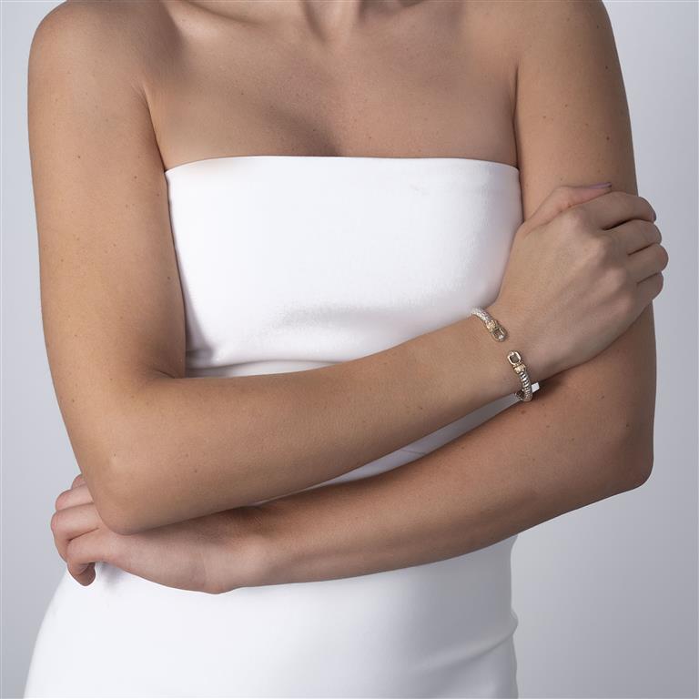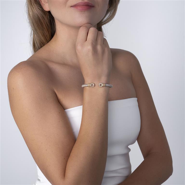14K Gold and Sterling Silver, Diamond Stackable Cuff Bracelet | 4MM