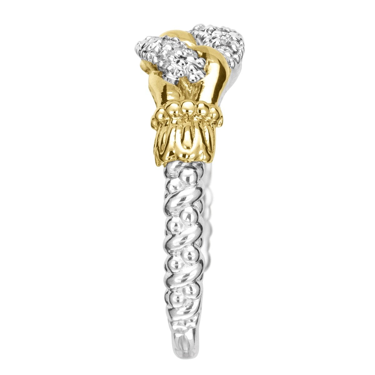 Featuring intricate twisted-knot and link motifs, this diamond ring in 14K gold and sterling silver offers a fresh take on enduring sophistication—perfect for those who appreciate timeless beauty with a contemporary twist.