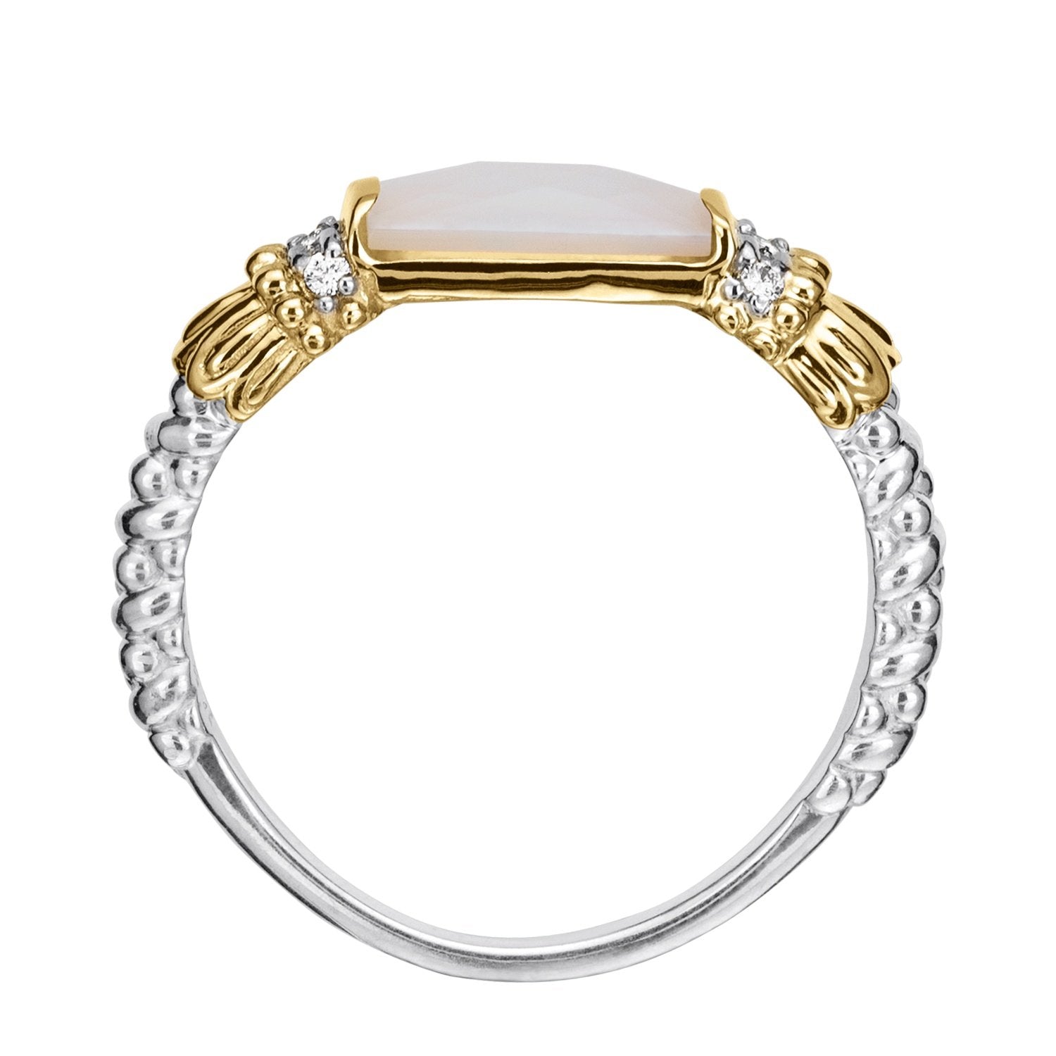 14K Gold and Sterling Silver, Mother of Pearl and Diamond Stackable Ring