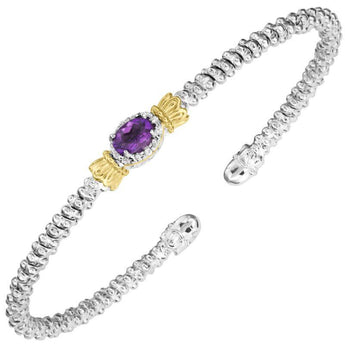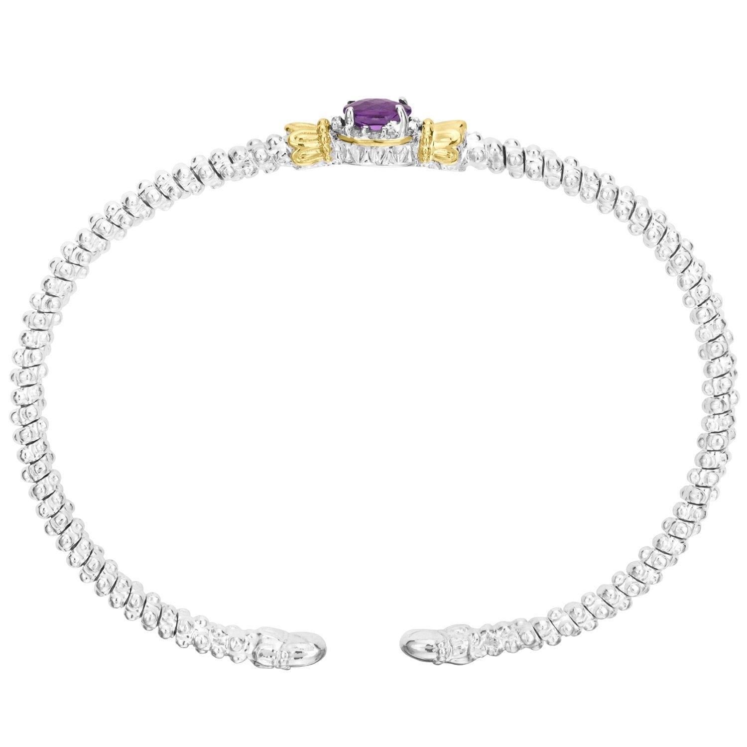 14K Gold and Sterling Silver, Amethyst and Diamond Stackable Bracelet