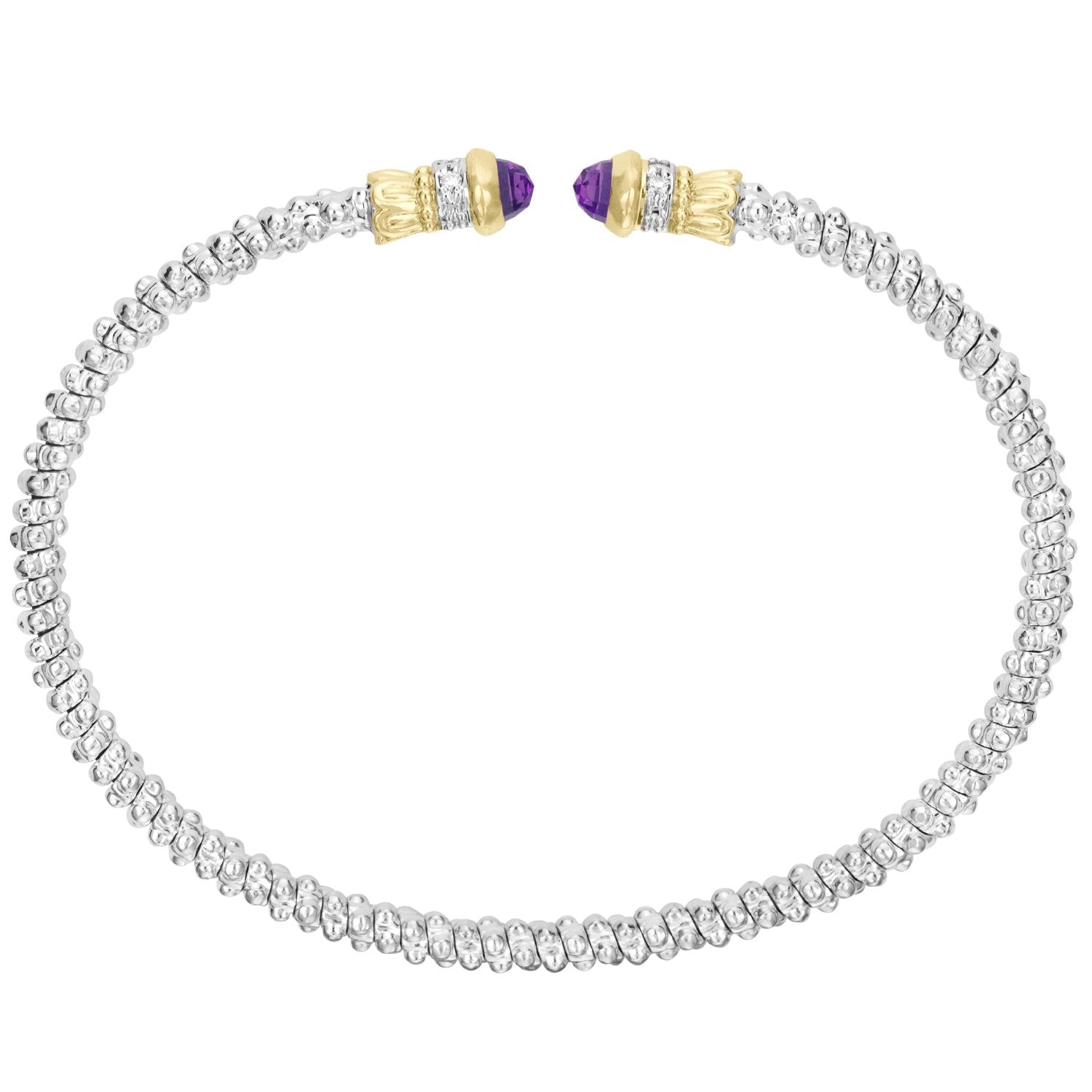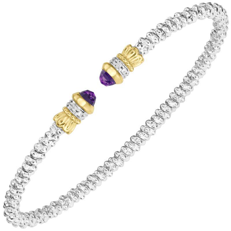 14K Gold and Sterling Silver, Amethyst and Diamond Stackable Bracelet