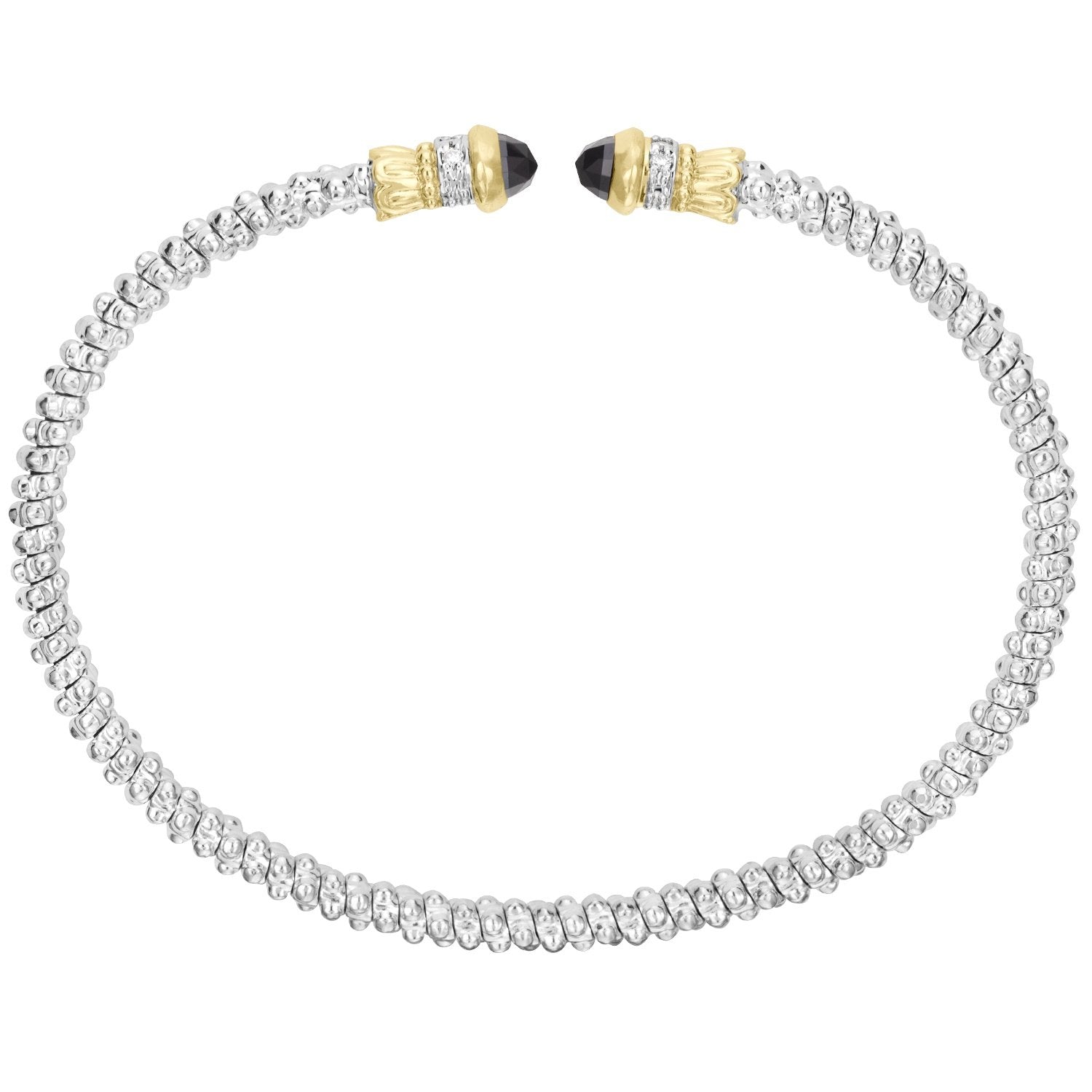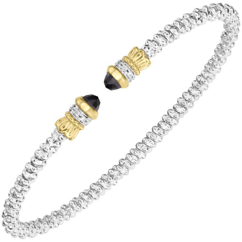 14K Gold and Sterling Silver, Black Onyx and Diamond Stackable Bracelet