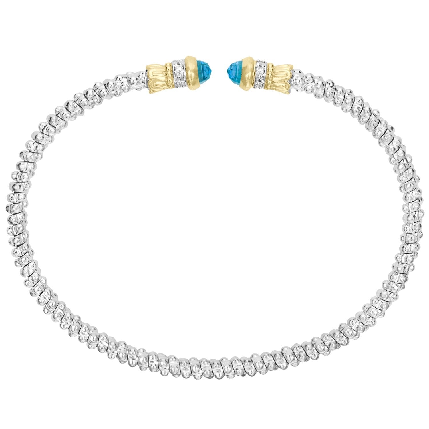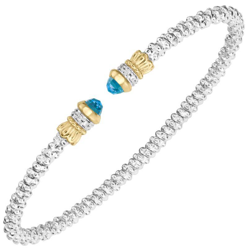 14K Gold and Sterling Silver, Blue Topaz and Diamond Stackable Bracelet