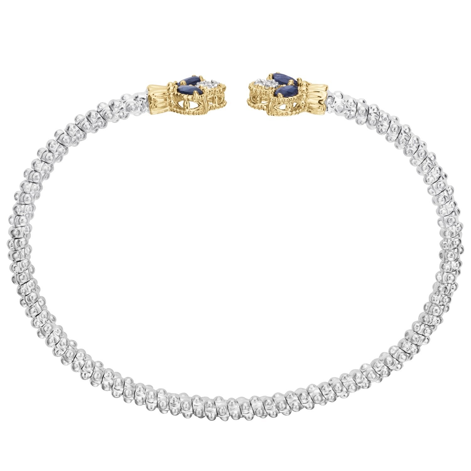 14K Gold and Sterling Silver, Diamond and Blue Sapphire Stackable Bracelet | 2MM
