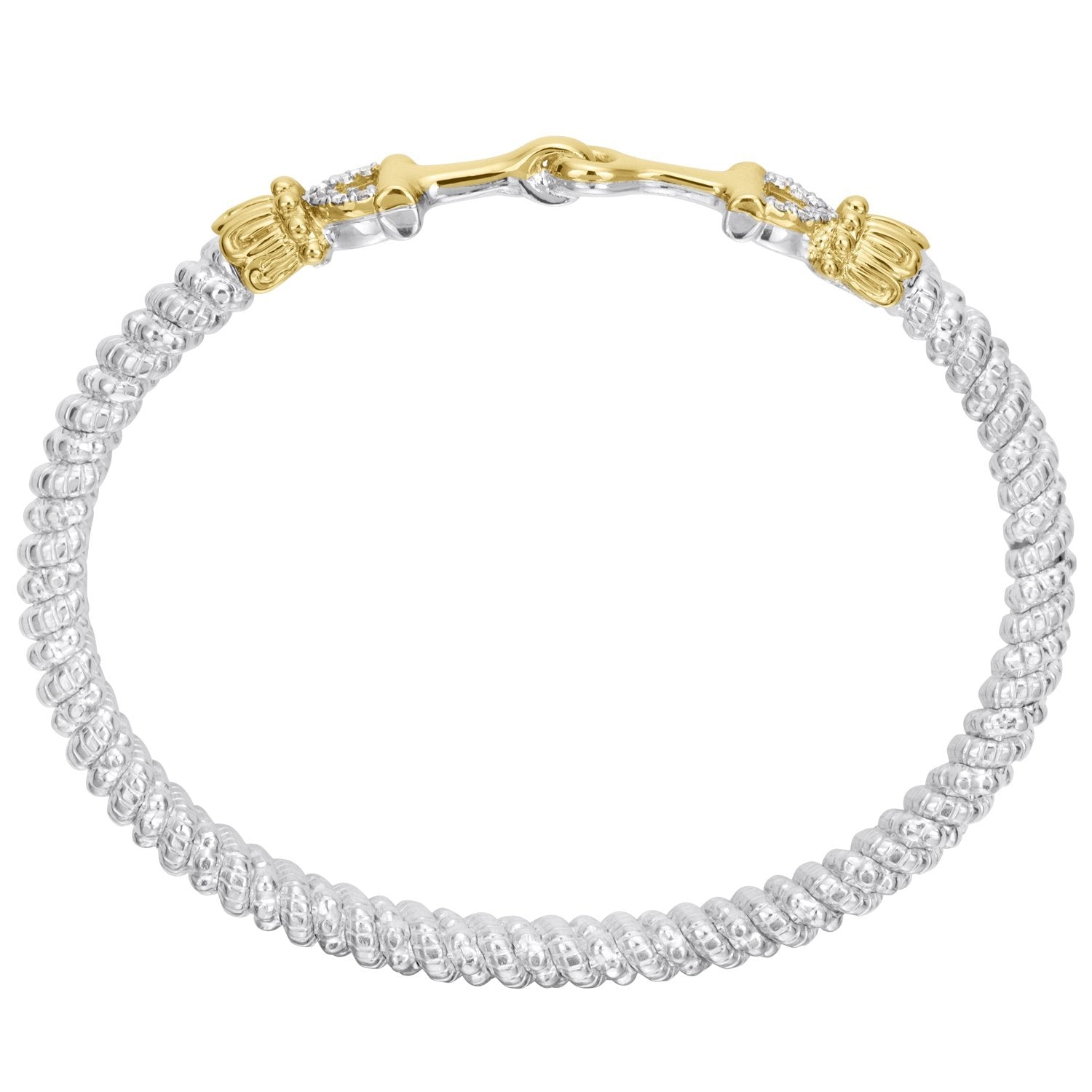 14K Gold and Sterling Silver, Diamond Horsebit Stackable Bracelet | 4MM