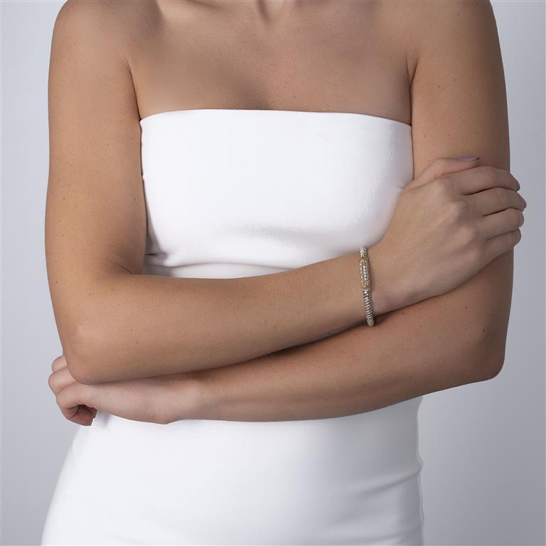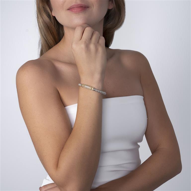 14K Gold and Sterling Silver, Diamond Stackable Bracelet | 4MM