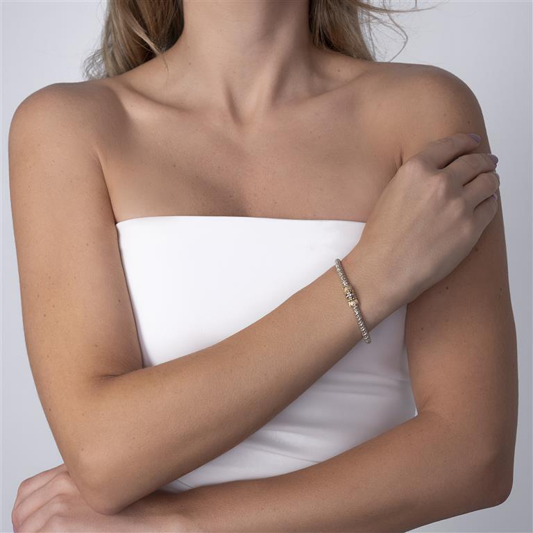 14K Gold and Sterling Silver, Diamond Stackable Bracelet | 4MM