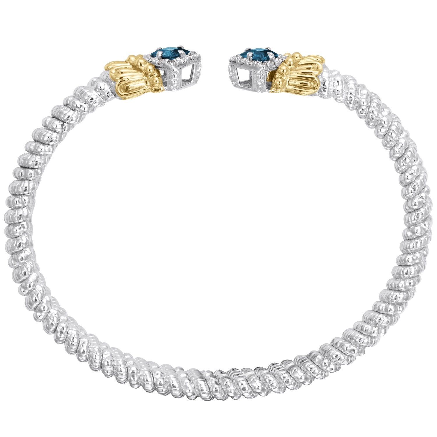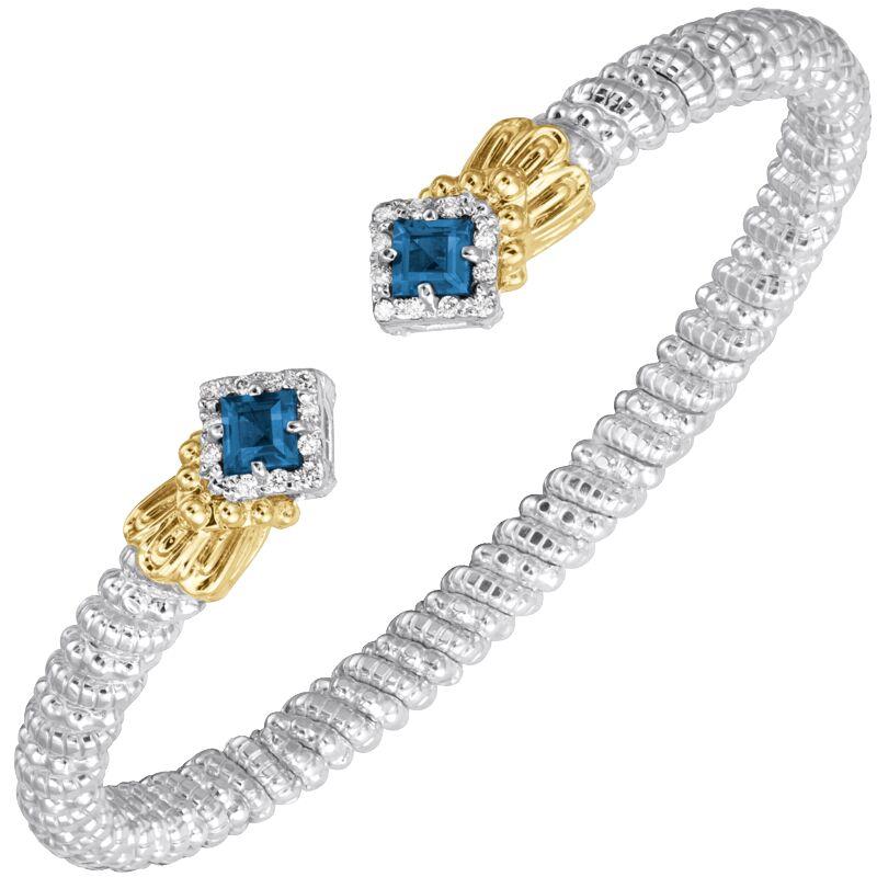 14K Gold and Sterling Silver, London Blue Topaz and Diamond Stackable Cuff Bracelet | 4MM