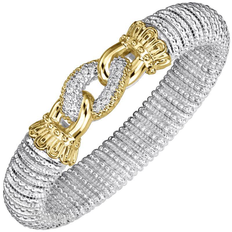 14K Gold and Sterling Silver, Diamond Stackable Bracelet | 12MM