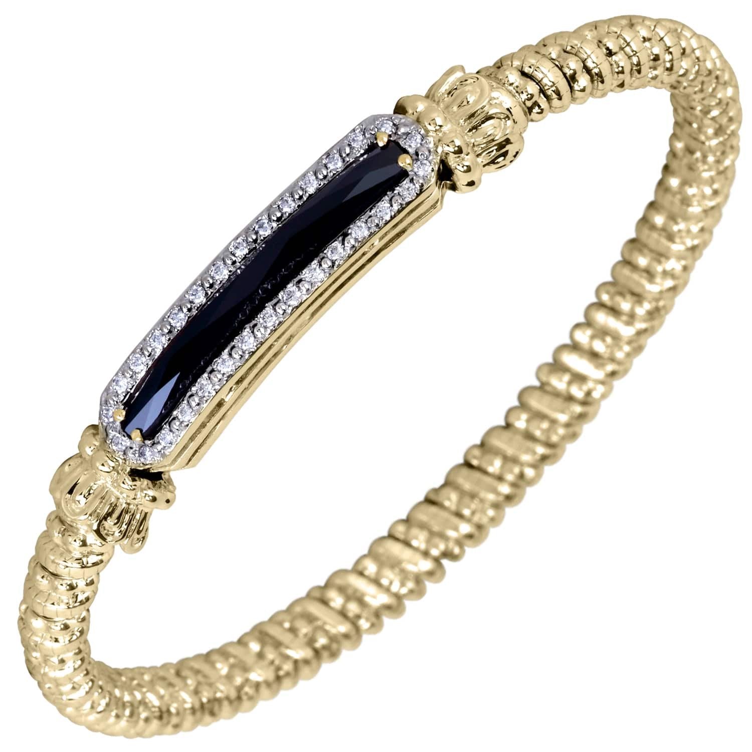 14K Gold, Black Onyx Bar and Diamond Stackable Bracelet | 4MM
