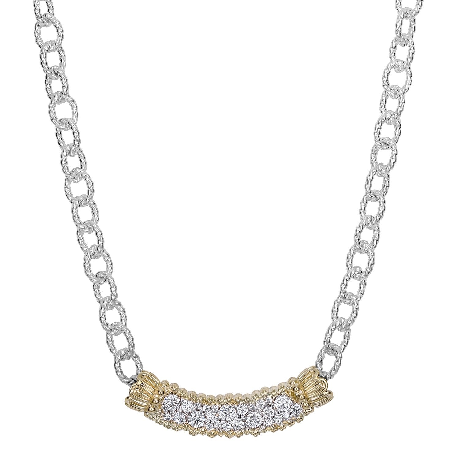 14K Gold and Sterling Silver, Multi-Pavé Diamond Bar Necklace