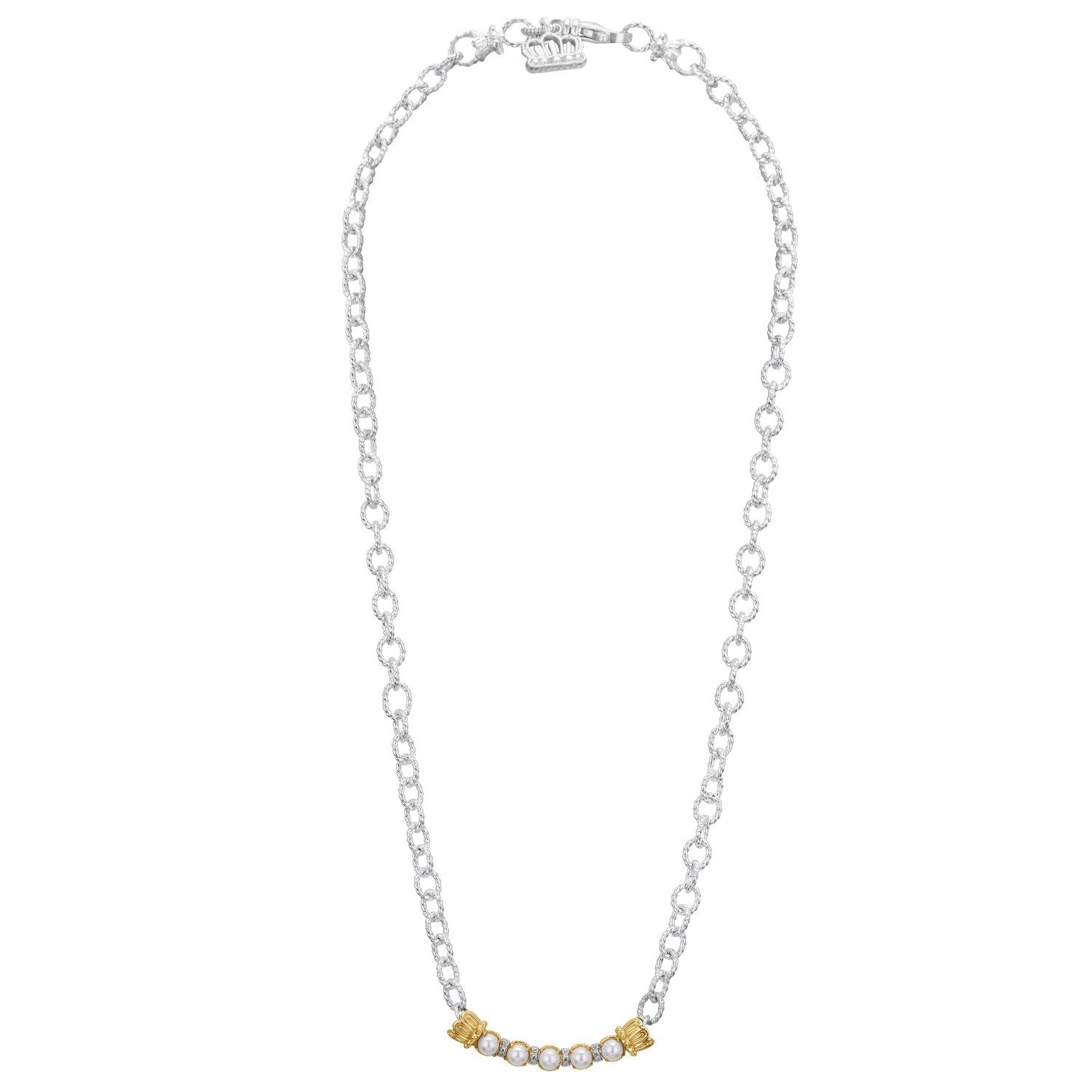 14K Gold and Sterling Silver, Pearl and Diamond Necklace