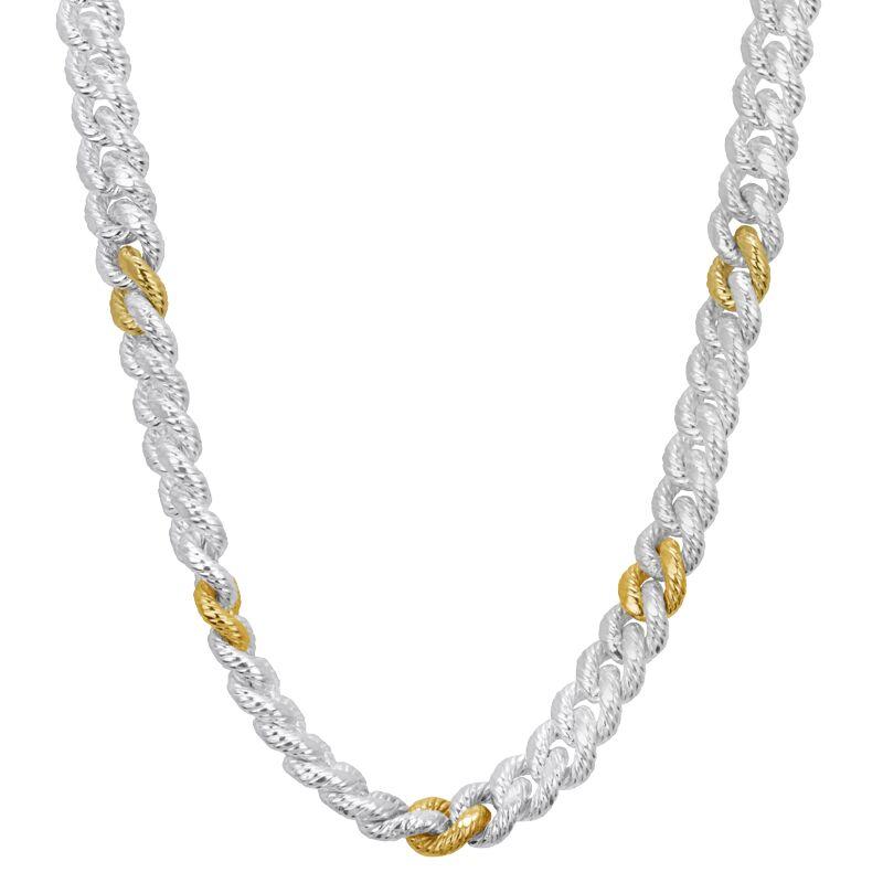 14K Gold and Sterling Silver, Two-Tone Statement Chain Necklace