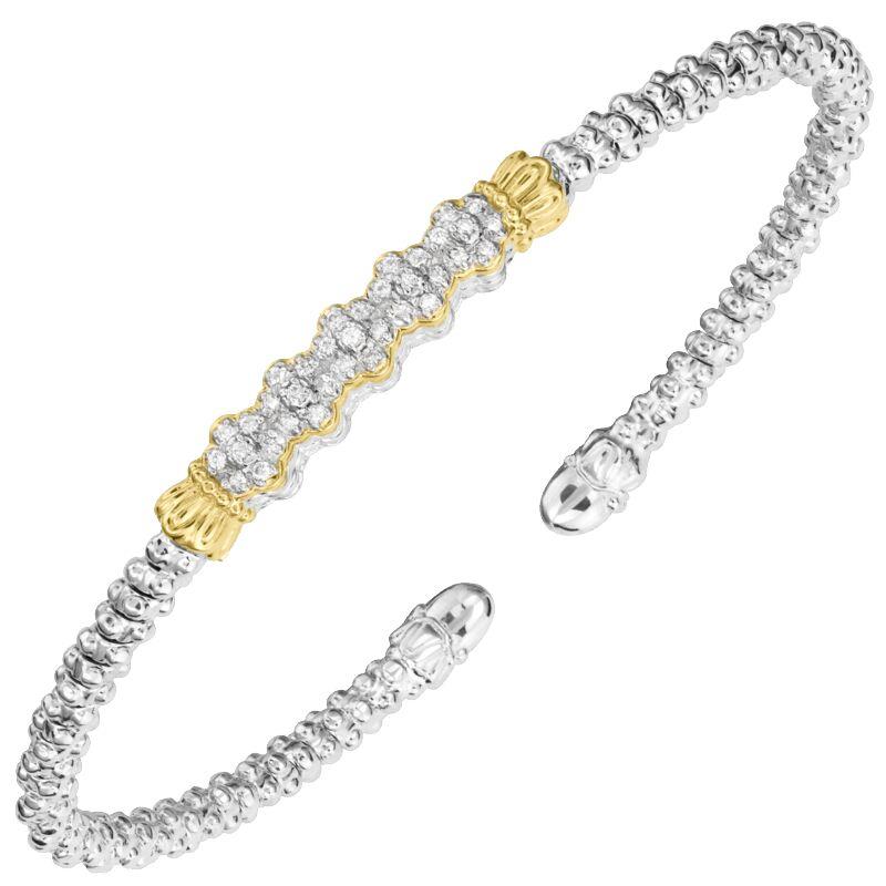 Sparkling pavé diamonds illuminate our 14K gold and sterling silver stackable bracelet. A Moiré Beaded® pattern enhances the look with exquisite textural detailing. Pair it with additional VAHAN styles for a dramatic stacked statement.