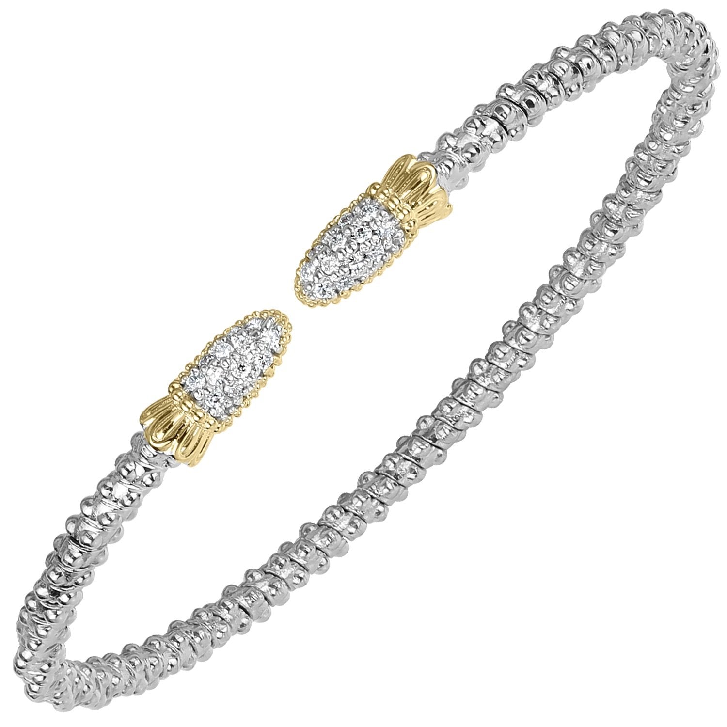 Accented by a Moiré Beaded® pattern and shimmering diamonds set in 14K gold, our elegant 2MM petite bracelet features an open silhouette. Whether paired with other bangles from VAHAN's collection or worn as a standalone piece, it enhances any look.