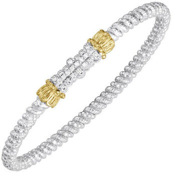 14K Gold and Sterling Silver, Diamond Stackable Bracelet | 3MM