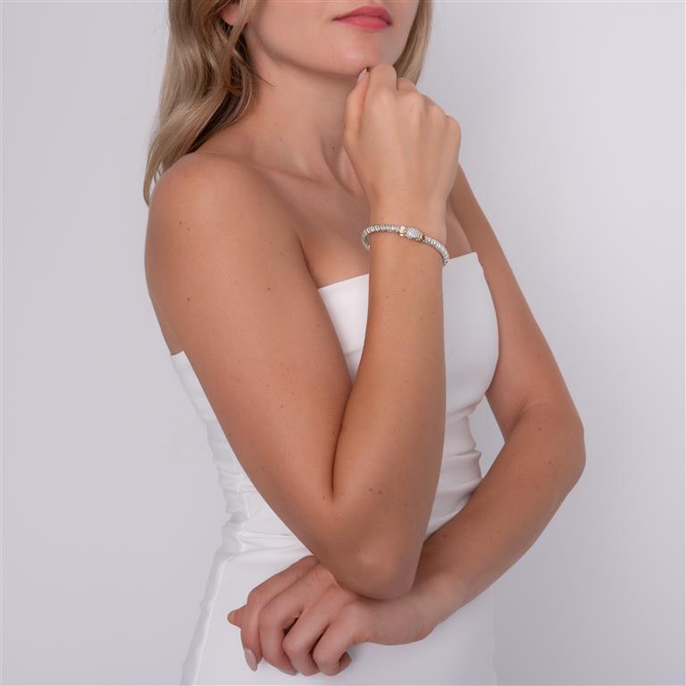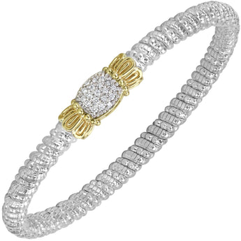 14K Gold and Sterling Silver, Diamond Stackable Bracelet | 4MM