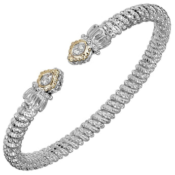 14K Gold and Sterling Silver, Diamond Stackable Cuff Bracelet | 4MM