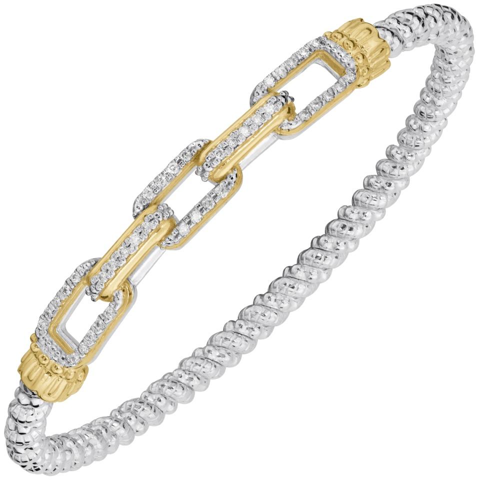 14K Gold and Sterling Silver, Diamond Stackable Bracelet