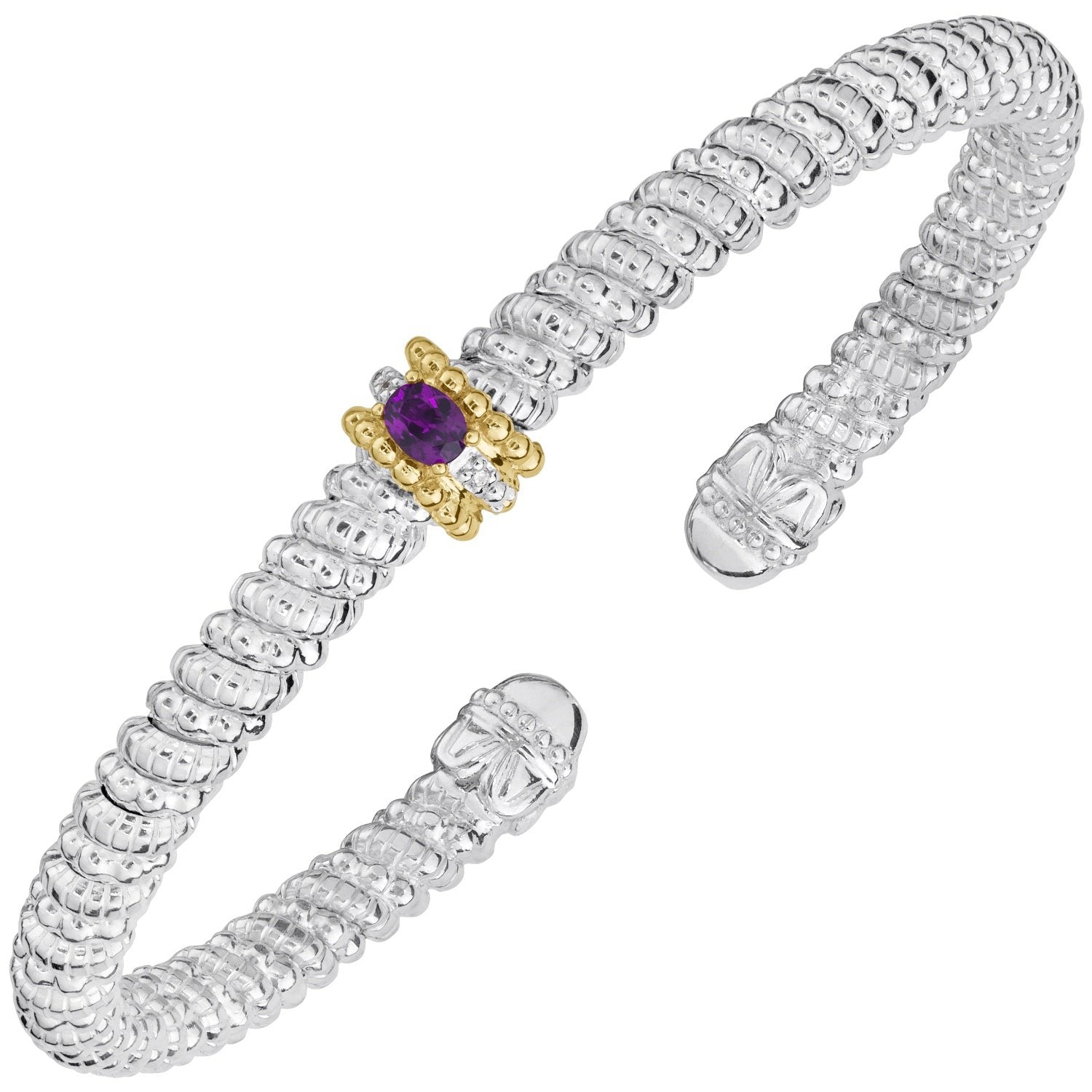 14K Gold and Sterling Silver, Amethyst and Diamond Stackable Bracelet
