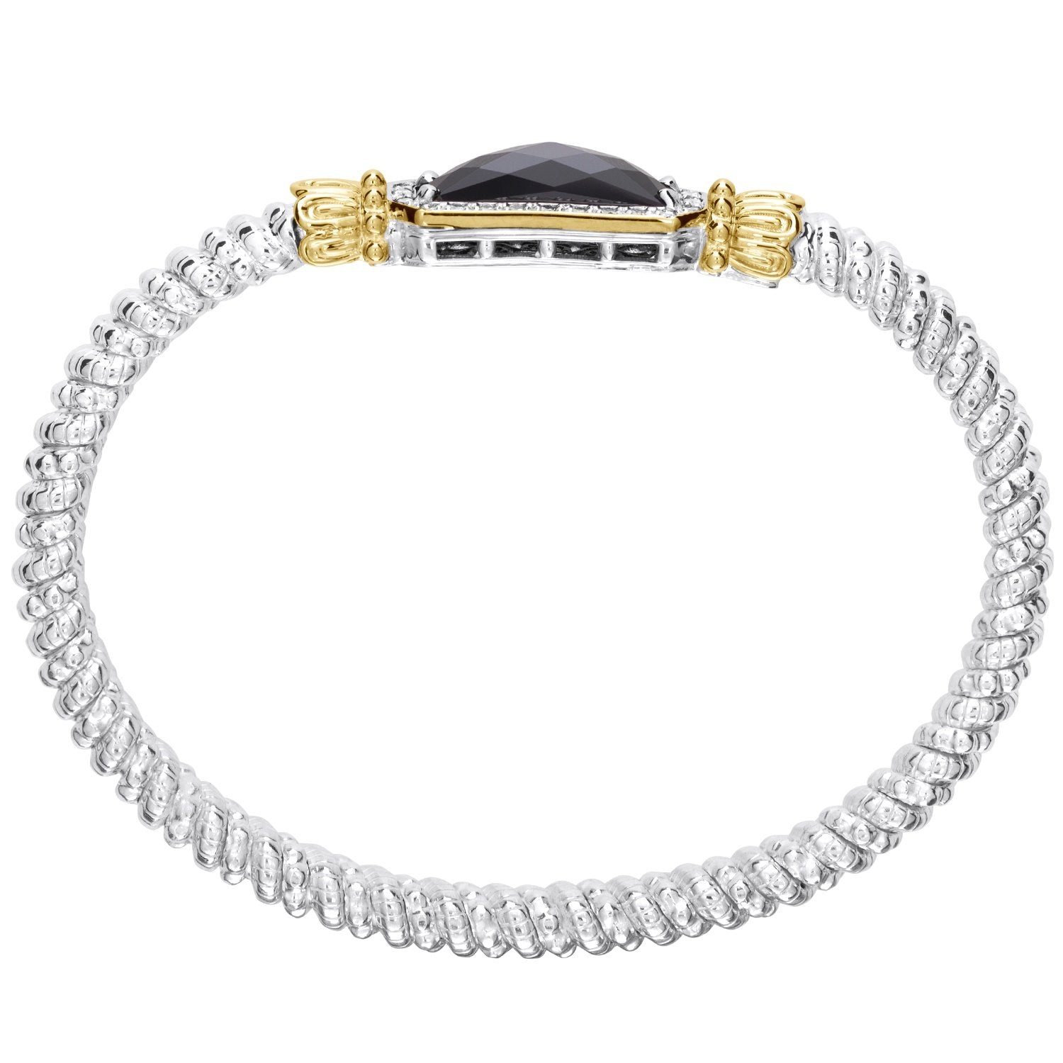 14K Gold and Sterling Silver, Black Onyx Bar and Diamond Stackable Bracelet | 4MM