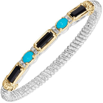 14K Gold and Sterling Silver, Black Onyx, Turquiose and Diamond Stackable Bracelet | 4MM