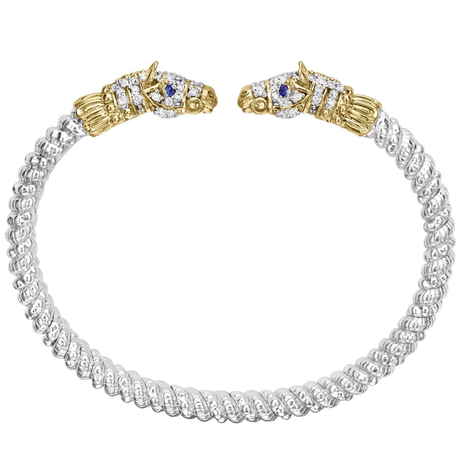 14K Gold and Sterling Silver, Blue Sapphire and Diamond, Equine Stackable Cuff Bracelet | 4MM