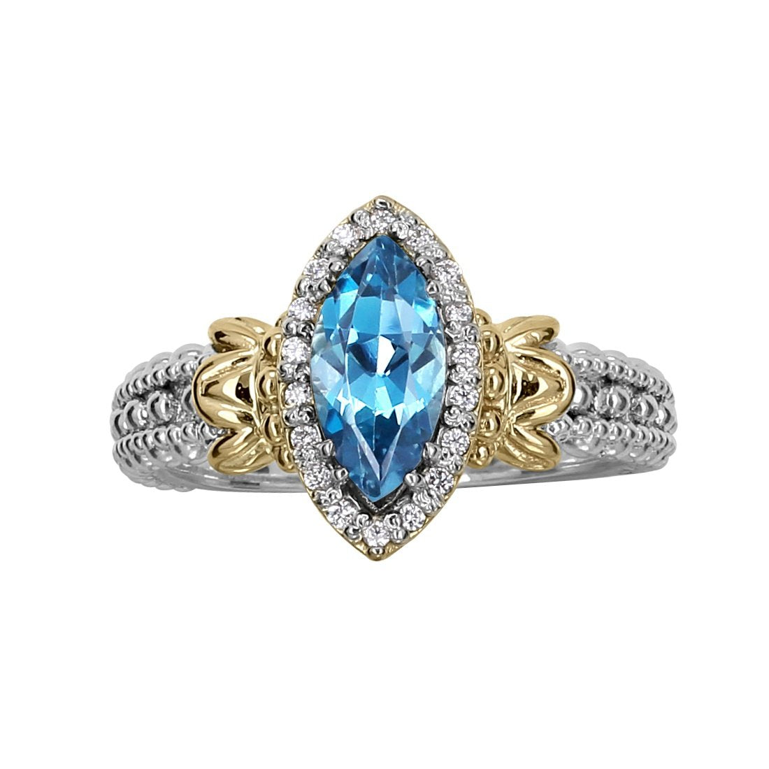 14K Gold and Sterling Silver, Blue Topaz and Diamond Ring