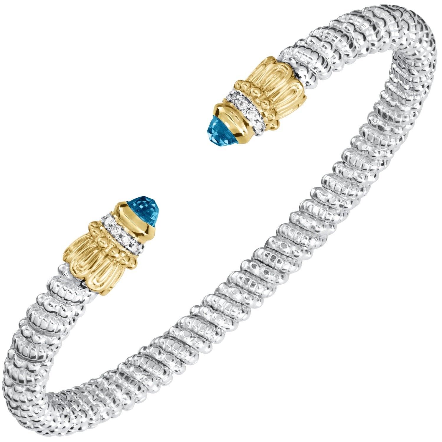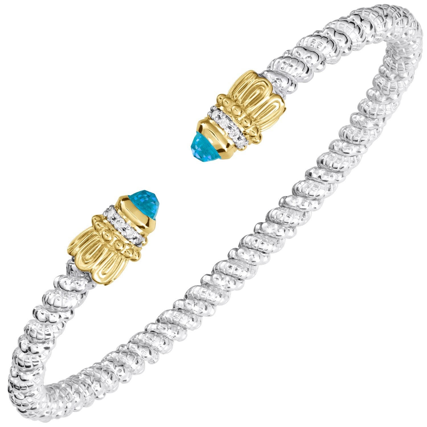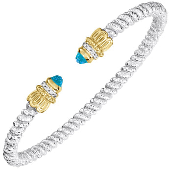 14K Gold and Sterling Silver, Blue Topaz and Diamond Stackable Cuff Bracelet | 3MM