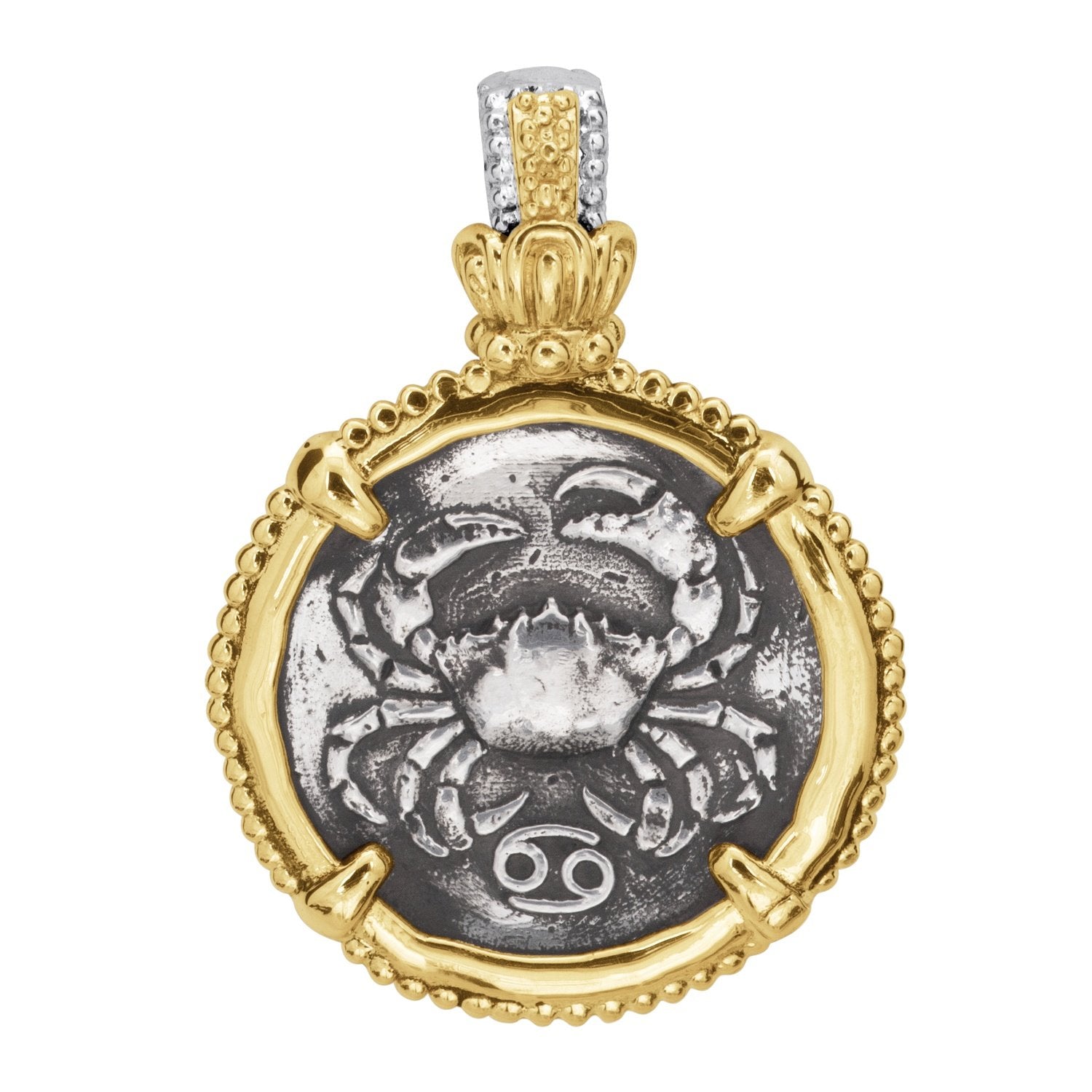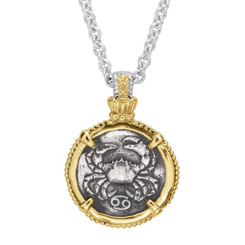 14K Gold and Sterling Silver, 'Cancer' Zodiac Coin Pendant
