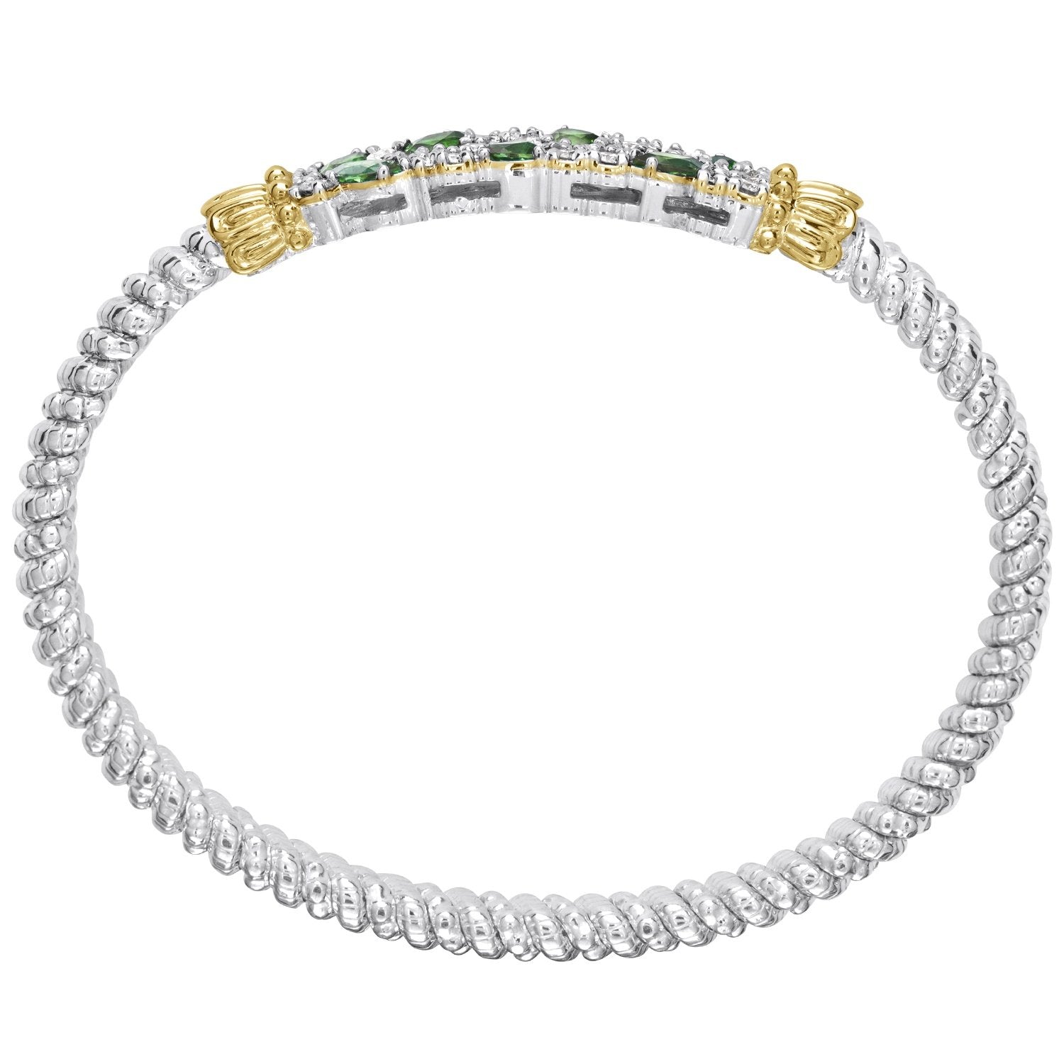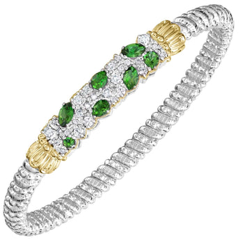 14K Gold and Sterling Silver, Chrome Diopside and Diamond Stackable Bracelet | 4MM