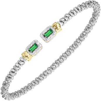 14K Gold and Sterling Silver, Diamond and Tsavorite Garnet Stackable Cuff Bracelet | 2MM