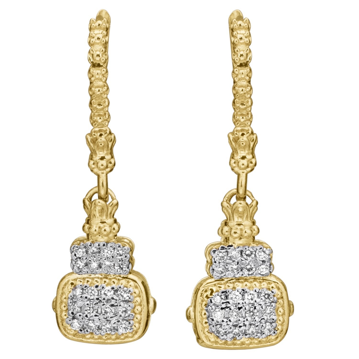 14K Gold and Sterling Silver, Diamond Drop Earrings